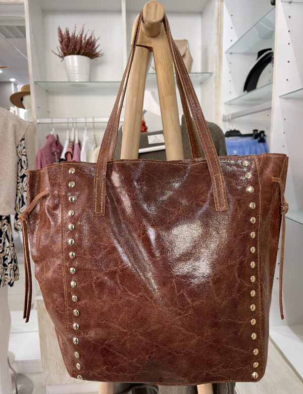 Blusa en color berenjena, cuello caído, drapeado recogido con detalle en dorado lateral, tela elástica. Elegancia.